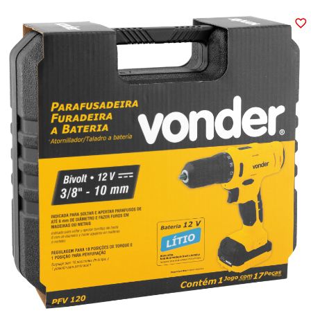 PARAFUSADEIRA E FURADEIRA BATERIA 12V PFV120 BIVOLT VONDER 6001100120